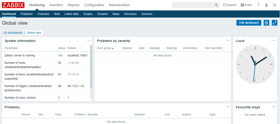 成功登录到 Zabbix 后台